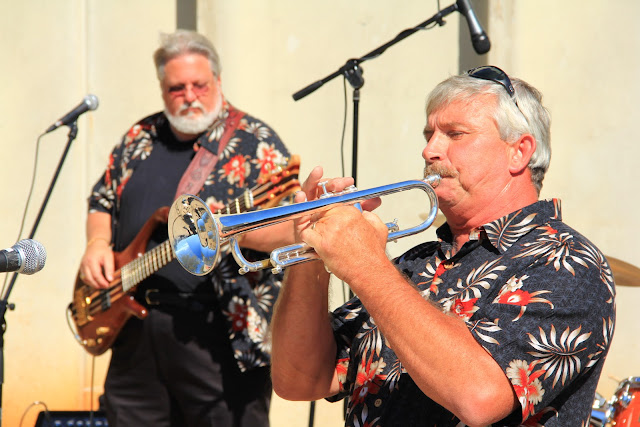 It was a gorgeous day to listen to beach music and what better place to do it than Joe Gibbs Racing in Hunterville, North Carolina?!? Both City Belle and I have fathers that play in their respective bands. My Dad plays the trumpet, does back-up vocals, and sometimes lead in the Ocean BLVD Band! City Belle's dad plays a banjo! Anyway, we had a blast and I would like to personally give a HUGE thank-you to Lyndsey Conner for making the whole thing possible. She is a wonderful person, mother, and soul. I asked her where her son was for the event and she said, "School! This isn't a big deal for him, he's met all these people." I thought well Country Boy will be filling in for him today b/c I was like a kid inna candy store at Joe Gibbs Racing!